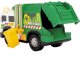Popelářské auto zelené na volnoběh, s manuální funkcí zvedání popelnice.