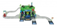 Sada obsahuje oranžové autíčko Porsche kabriolet. Sjezdové garážové cesty jsou dostatečně prostorné a parkovací boxy jsou očíslované a výtahem lze autíčko vyvézt až na střechu garáže. Jízda dolů je velmi rychlá, protože vozidlo jede z horního patra dolů do výstupní brány bez zastavení.