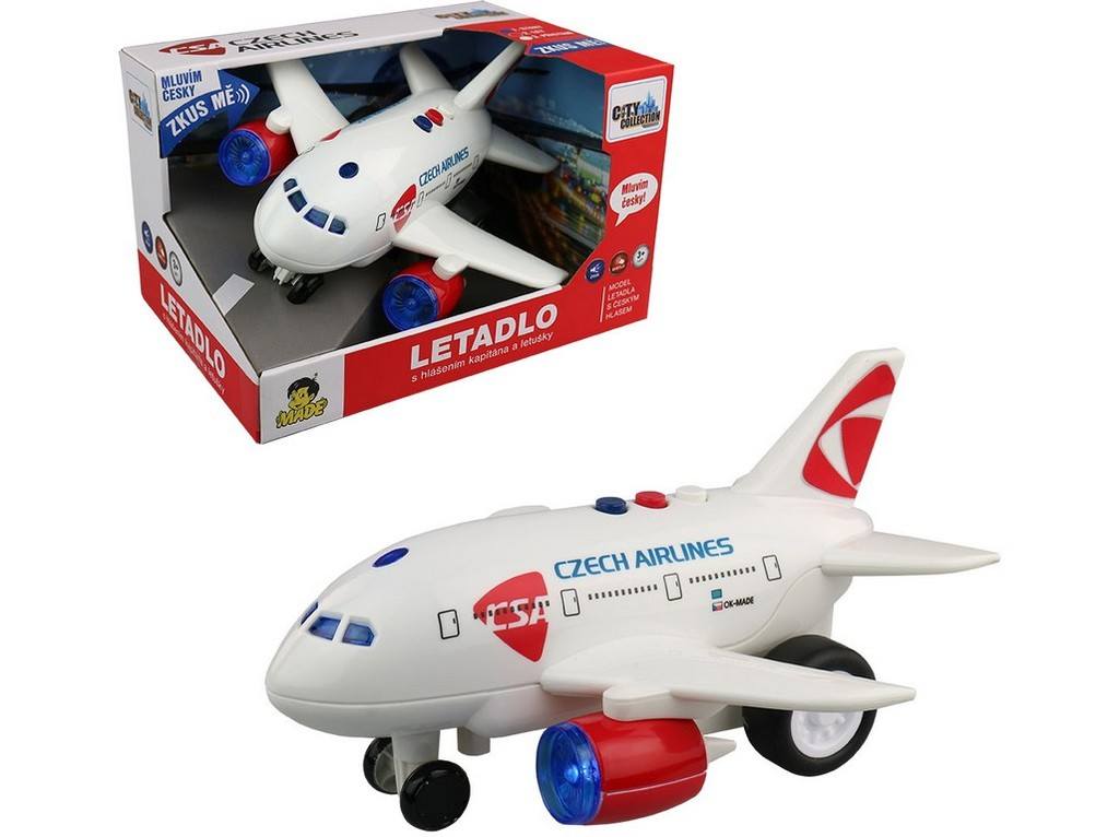 Dětské letadlo s licencí ČSA, s hlášením kapitána a letušky.