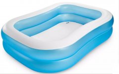 Krásný rodinný nafukovací bazén ve tvaru obdelníku, ve kterém užijete v horkých letních dnech spoustu zábavy a příjemného osvěžení.