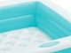 Dětský bazén s nafukovacím měkkým dnem čtvercového tvaru. Dodáván v tyrkysové modré barvě.