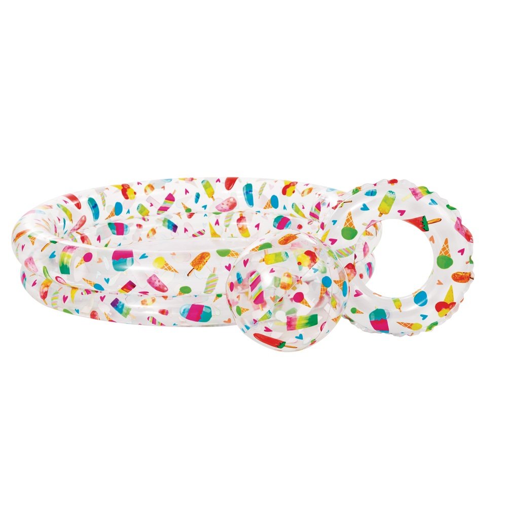 Dvoukruhový bazének v sadě s kruhem a míčem. Dodáváno 2 různých provedení. Cena za 1 set bazénku, kruhu a míče.