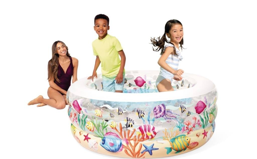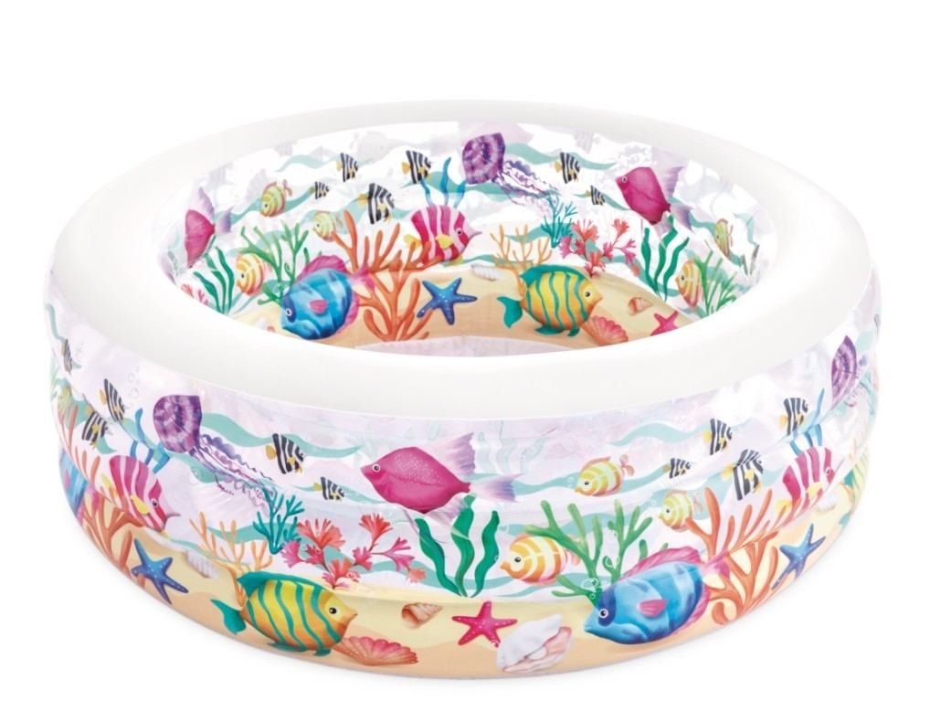 Krásný dětský nafukovací bazének v designu akvária s nafukovací podlahou.