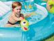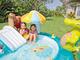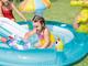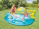 Zábavné nafukovací hrací centrum s bazénkem, skluzavkou, slunečníkem, aligátorem, který po napojení na zahradní hadici stříká vodu a nafukovacím kyblíčkem a kačenkou.