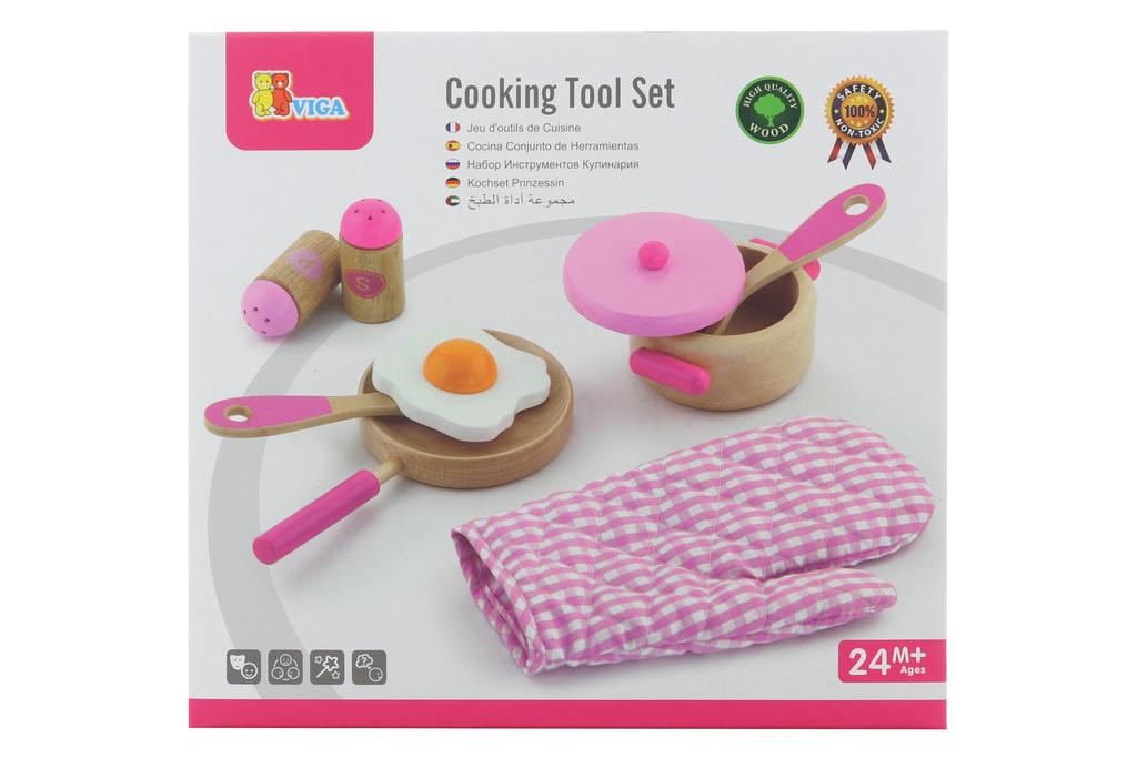 Viga Dětské dřevěné nádobí - snídaně růžové