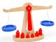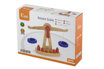 Dřevěná váha o velikosti cca 28 × 21 × 8 cm.