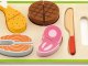 Dřevěné krájení masa s prkénkem a dřevěným nožem.