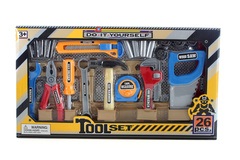 Obsahuje šroubovák, kladívko, klíč, šrouby, matice a destičky pro šroubování.