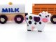 Dřevěná mašinka se 3 vagóny a kravičkou.