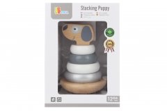 Skládací dřevěná pyramida s motivem roztomilého štěňátka.