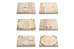 Dřevěná sada kostek na dřevěném podnosu.