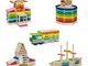 Tato 250 kusová sada dřevěných bloků obsahuje 150 ks bloků z přírodního dřeva, 100 ks barevných bloků 10 různých barev.