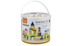 Dřevěná stavebnice v kyblíku.