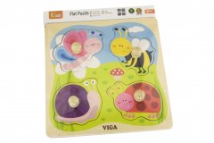 Dětská dřevěná vkládačka s úchytkami. Dítě se podle obrysů a tvaru snaží najít správný obrázek, díky kterému se u něj rozvíjí představivost a logické myšlení a umístěním do správného otvoru podporuje rozvoj jemné motoriky.