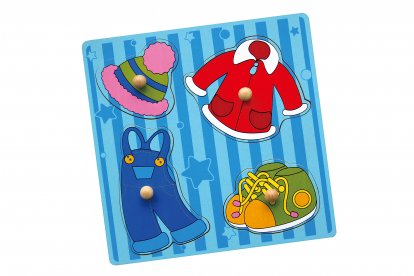 Barevná dětská vkládačka se čtyřmi druhy oblečení.