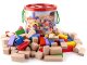 Dřevěná stavebnice - kostky v kyblíku s prostrkávacím víkem 2 v 1.