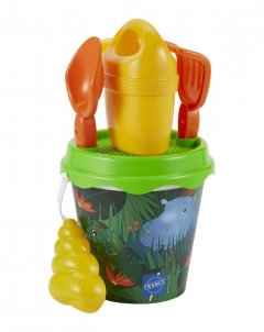 Obsahuje kyblíček, sítko, nákladní autíčko, hrabičky a lopatičku.