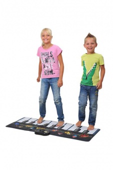 Hrací podložka piánko s paličkami. Podložka reaguje na dotyk, hraje hudbu (8 melodií, 3 různé hudební nástroje).