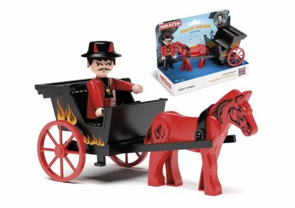 Figurka Igráčka Čerta Hynka s ohnivým kočárem taženým koníkem Uhlíkem.