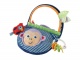 Na jedné straně hračky jsou barevní zvířecí kamarádi a na druhé straně zrcátko.