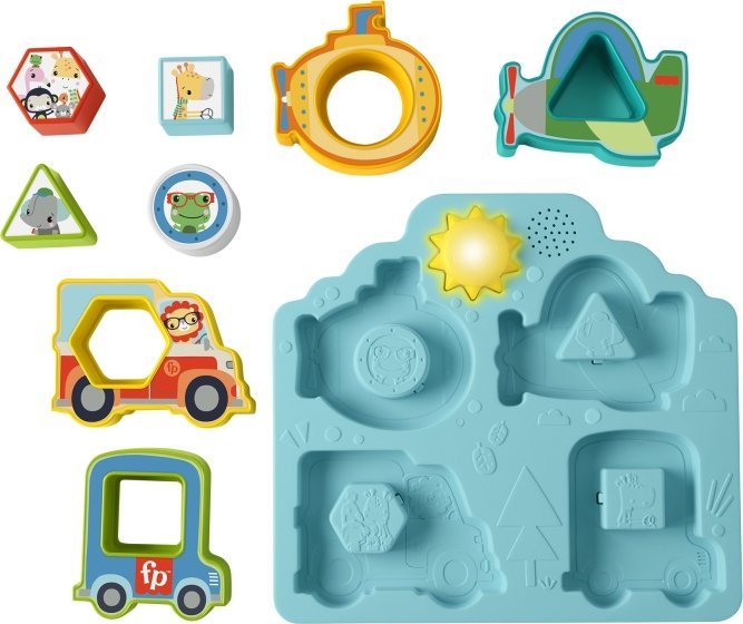 Když děťátko umístí dílek puzzle nebo tvar s motivem zvířátka na správné místo, bude odměněno zábavnými zvuky dopravních prostředků a zvířátek a světýlky.