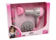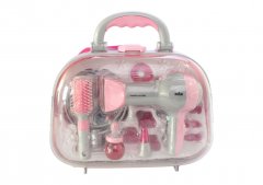 Kosmetický salon v praktickém uzavíratelném kufříku. Fén, prstýnky, náhrdelníky, hřebínky…