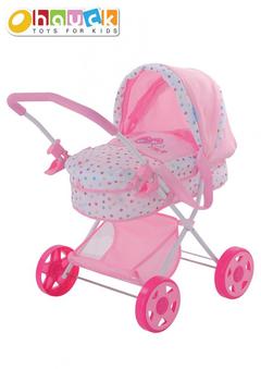 Skvělý dětský kočárek pro panenky v pestrém barevném provedení s motivem květin.