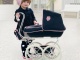 Retro kočárek s velkými koly a taškou na vše potřebné.