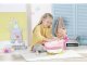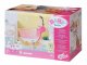 Z automatické sprchy proudí opravdová voda. Hadici je možné trochu povytáhnout, takže BABY born může relaxovat v teplé vodě s hlavou opřenou o polštářek ve tvaru srdíčka a sprchovat se. Malá gumová kačenka Berta nemůže u legrace ve vaně chybět.