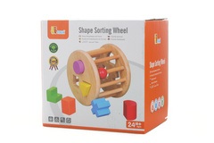 Kostka s držadlem a otevíracími dvířky pro vkládání různých tvarů a barev.