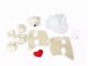 Sada Ušij si medvídka – Lední medvídek obsahuje: střižený plyš – přední a zadní část, 2 ruce – připravené k přišití, 2 nohy – připravené k přišití, hlavu – ušitou a vycpanou, sáček s kuličkami vyrobenými z recyklovaného skla, ušité plyšové srdíčko, náplň do plyšové hračky, nit, návod.