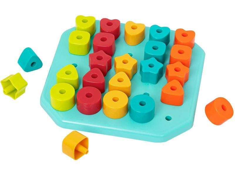 Hračka s barevnými navlékacími tvary nabízí mnoho variant pro hravé učení dítěte.