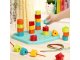 Barevné korálky ve tvaru srdce, hvězdy, trojúhelníku, kruhu a čtverce je možné navlékat na šňůrku či skládat na desce s otvory do výšky.