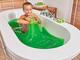 - Prášek Glibbi přemění vodu do zeleného slizu a zábavné koupání může začít, poté stačí jen doplnit vodu a vytáhnout špunt.