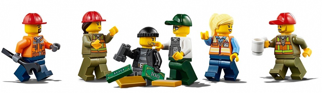 Obsahuje 6 LEGO minifigurek: 4 drážní pracovníci, bezpečnostní