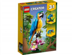Se stavebnicí Exotický papoušek od LEGO Creator 3 v 1 se malí stavitelé a milovníci zvířat vypraví do pralesa, kde zažijí akční dobrodružství. Mohou se těšit na pestrobarevného papouška, který sedí na větvi, kde se otáčí a hýbe křídly a ocasem.