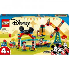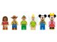 Stavebnice Slavnostní vláček Disney od LEGO ǀ Disney se stanicí, 3 alegorickými vozy a 6 LEGO minifigurkami: Myšákem Mickeym, Myškou Minnie, Vaianou, Petrem Panem, Zvonilkou a Woodym.