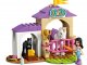 Stavebnice obsahuje auto LEGO Friends, přívěs pro koně, stáje s příslušenstvím pro hřebelcování, překážky a otěže, s jejichž pomocí mohou děti koně vodit a učit klusat.
