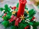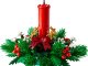 Tato vánoční stavebnice LEGO se skládá z červené svíčky obklopené červenými bobulemi, zlatými hvězdami a zeleným listím.