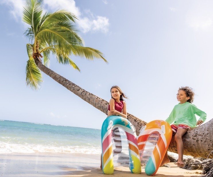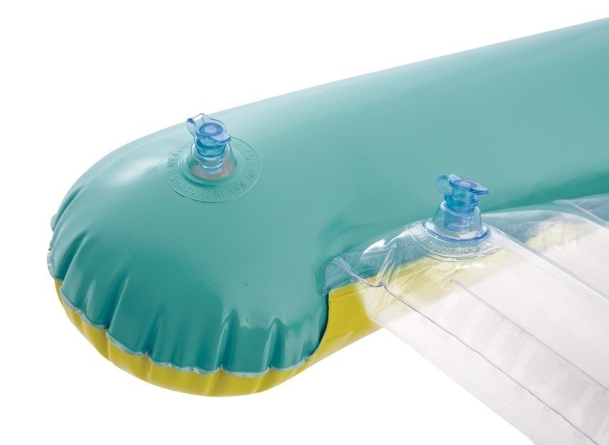 Nafukovací lehátko s madly Surf's Up Rider disponuje dvěma pevnými madly pro lepší stabilitu a průhlednou základnou, aby děti mohly pohodlně pozorovat svět pod nimi.