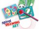 Spirálkové kreslení. Dokončete 16 předtištěných karet pomocí jednoho ze tří červených koleček a rámečku.