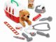 Veterinární set se skládá z vyšetřovacího vozíku, přepravky, misky na krmení a různých lékařských pomůcek jako je injekční stříkačka, palička, stetoskop, sprchová hlavice a teploměr.