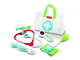 Malý doktor či doktorka může s pomocí stetoskopu poslouchat pacientovo srdíčko, kontrolovat jeho teplotu pomocí teploměru (zmáčknutím tlačítka změníte stav z „nemocného“ na „zdravého“!), podívat se do ucha pomocí otoskopu (fůůj špinavá ouška!) nebo vyléčit bolístky pomocí obvazu.