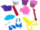 Veselá modelína obsahuje 3× kelímek 50 g, 2 tvořítka na výrobu jednorožců, křídla a nožičky pro jednorožce, nůžky, tvořítko na odzobu jednorožce a další příslušenství.
