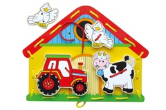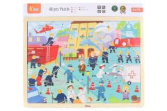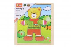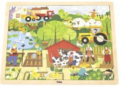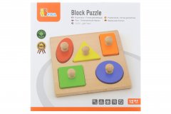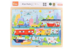 Dřevěná vkládačka s motivem dopravních prostředků.