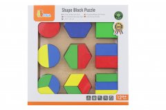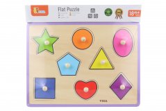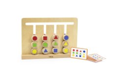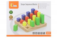 Dřevěné vyjímatelné tvary v pastelových barvách.