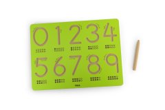 Dřevěný magnetický labyrint s kuličkami ve tvaru čísel.