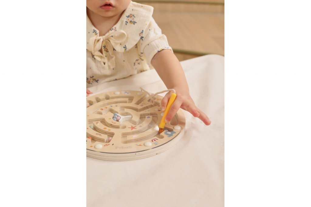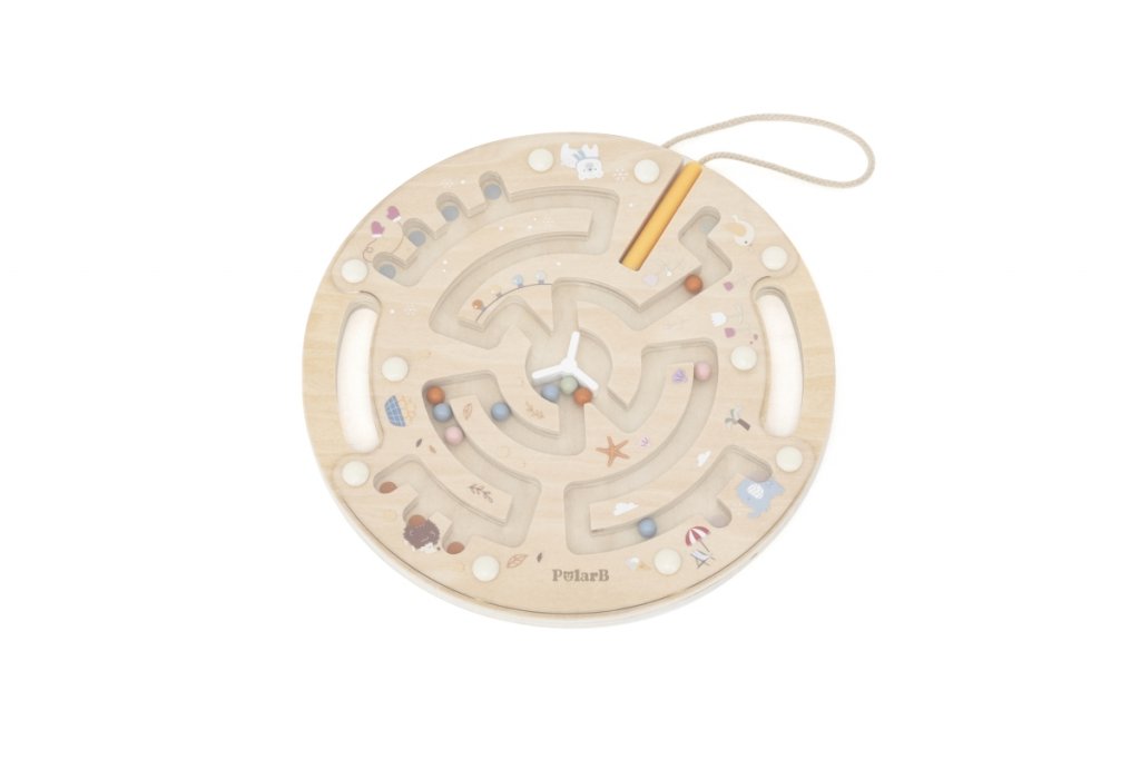 Pomocí magnetické tužky děti posouvají kuličky v labyrintu.