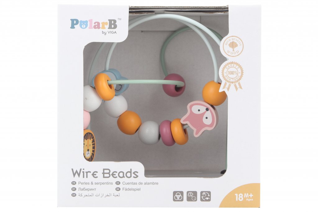 Dítě posouvá korálky po silné drátěné konstrukci a tím cíleně cvičí jemnou motoriku.