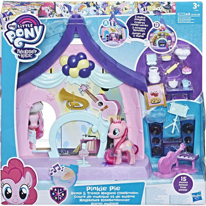 Hrací set My little pony s Pinkie Pie 2v1 nenabízí jen jednu možnost, jak si hrát, ale rovnou dvě, protože hrací set je oboustranný. Pinkie Pie učí své studenty své vášni pro sladké a pro hudbu, proto je jedna strana setu připravena na pečení a druhá na hudební produkci. Set navíc hraje, můžete si poslechnout kytarové sólo nebo zvuk trouby, když je upečeno. Set je inspirovaný seriálem My little Pony: Přátelství je magické. Ať už si vyberete pečení nebo hudbu, čeká na vás Pinkie Pie a spousta skvělých doplňků. Různé doplňky v různých setech dle aktuální skladové dostupnosti.